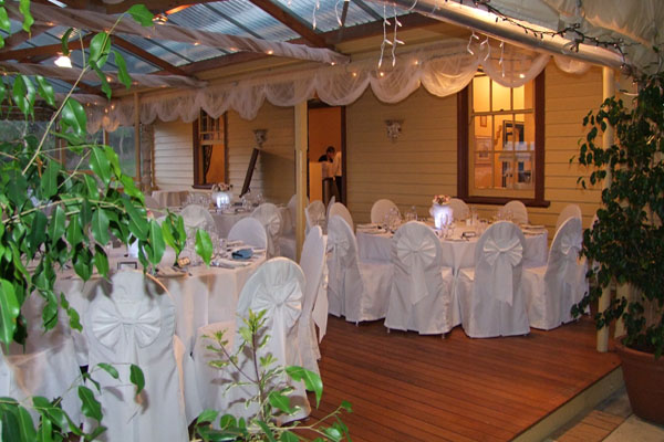 Pre-dinner savouries, 3 course dinner. Includes tea and coffee, bridal and cake table skirting, white linen table cloths, glasses, cutlery and crockery.